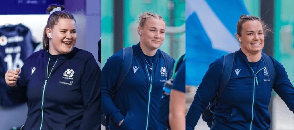 Leah Bartlett, Leia Brebner-Holden and Rachel Malcolm are pictured – thanks to Scottish Rugby and Ruby Adam Photography