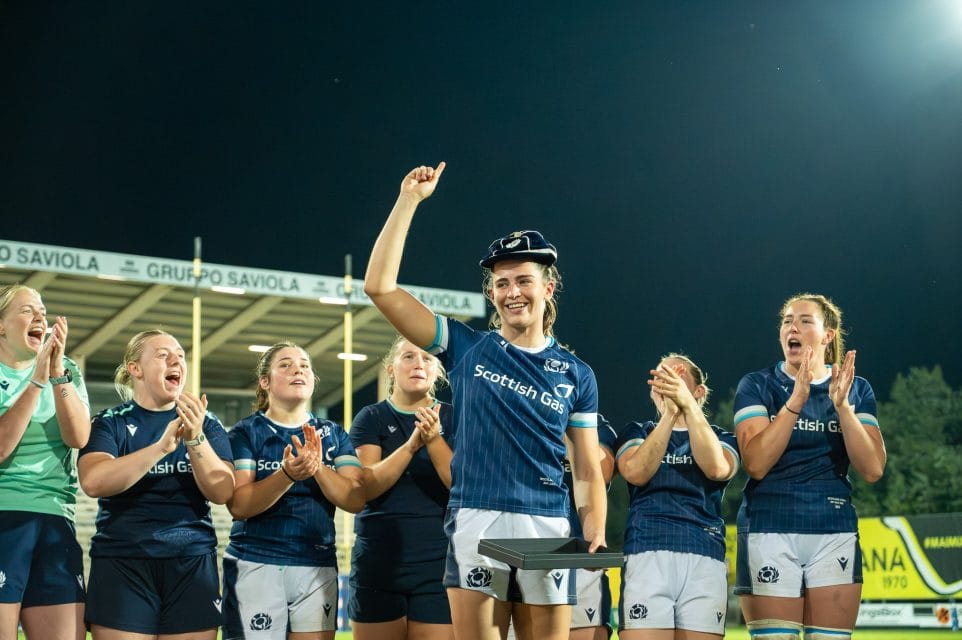 The 30-year-old second-row from Ellon now has 68 caps for her country after playing 61 minutes after recovering from a tumour in her chest.