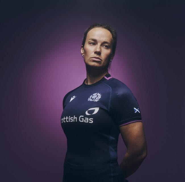 Scotland captain Rachel Malcolm is pictured in the new kit – thanks to Scottish Rugby