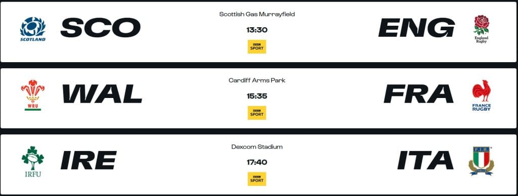 • The other round two games see Wales play France at Cardiff Arms Park (3.35pm, live on BBC) and Ireland are hosting Italy at the Dexcom Stadium in Galway (5.40pm, live on BBC).